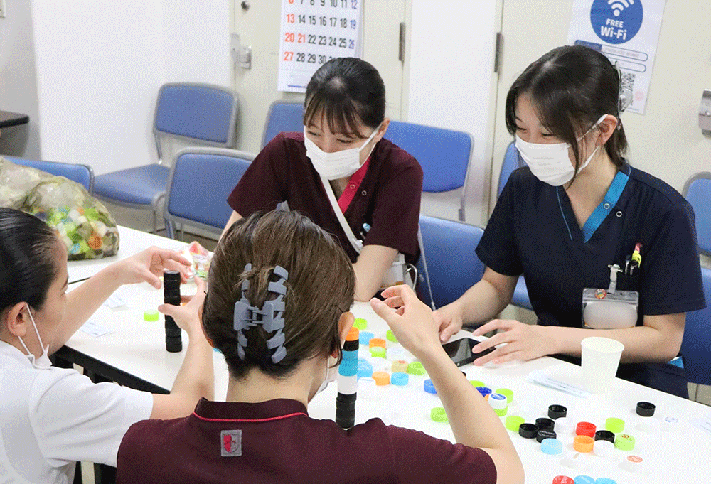 新人看護師の1年間は、新人マークのバッジをつけて業務をおこないます。